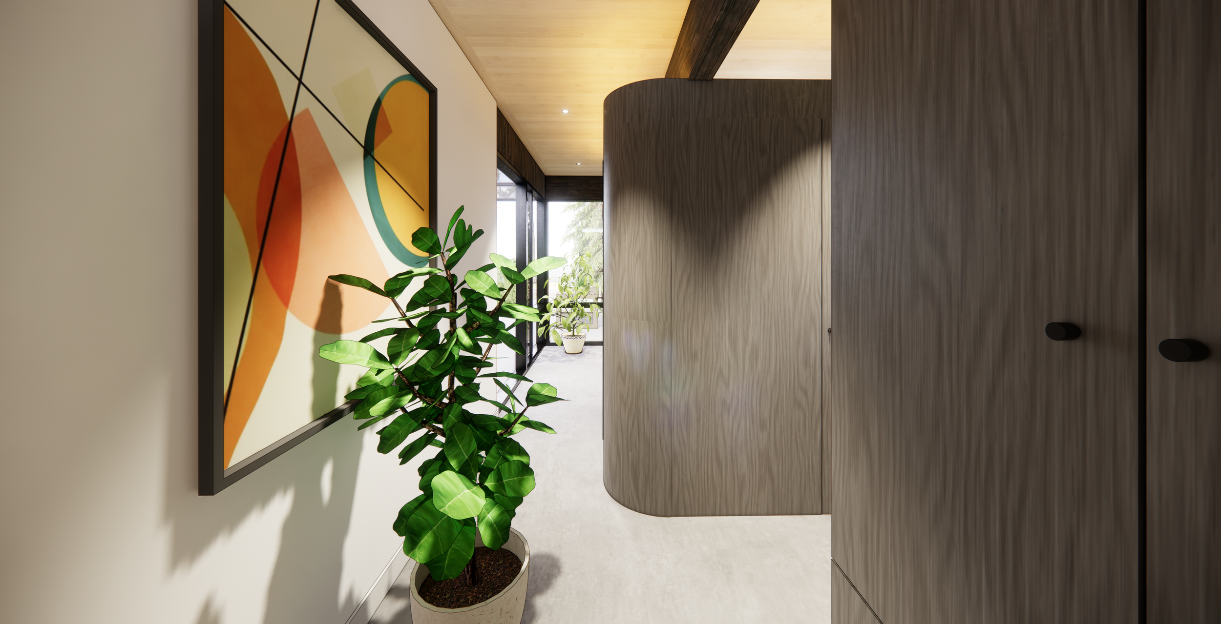 Conceptual design for an urban infill lot (repeatable). The hyper efficient plan packs four bedrooms, with an option for a full basement to add square footage. The upper floor is dedicated to sleeping, while the full lower floor serves fully open living space.