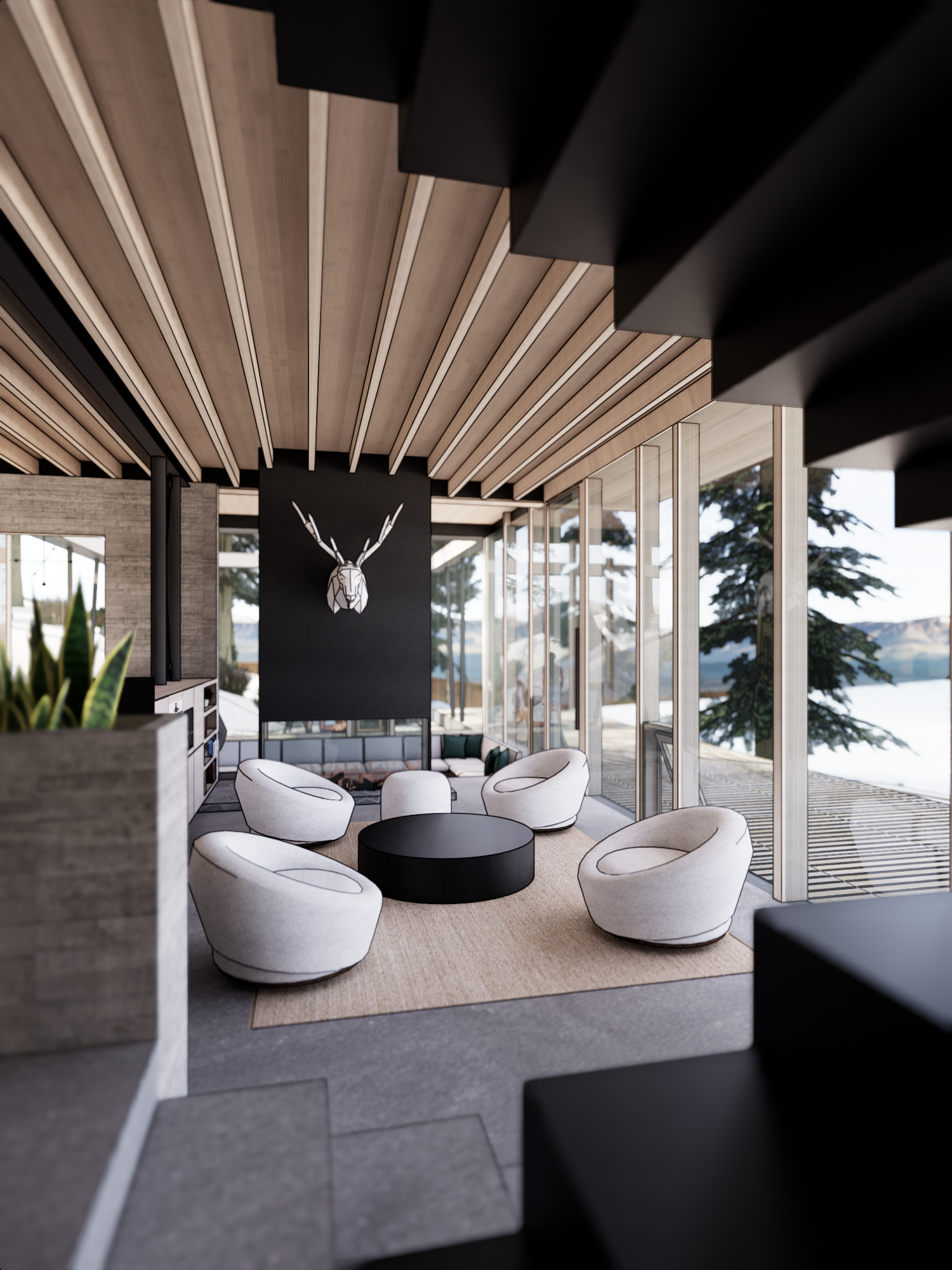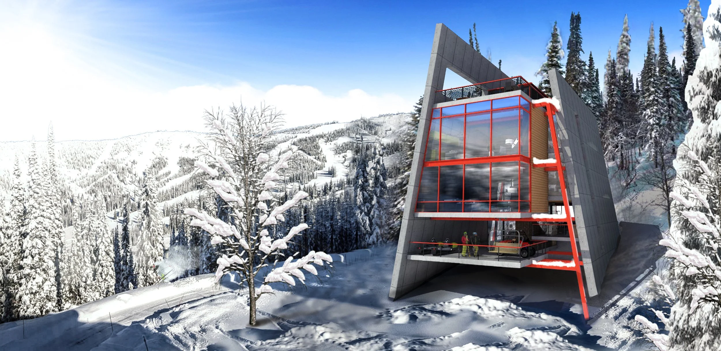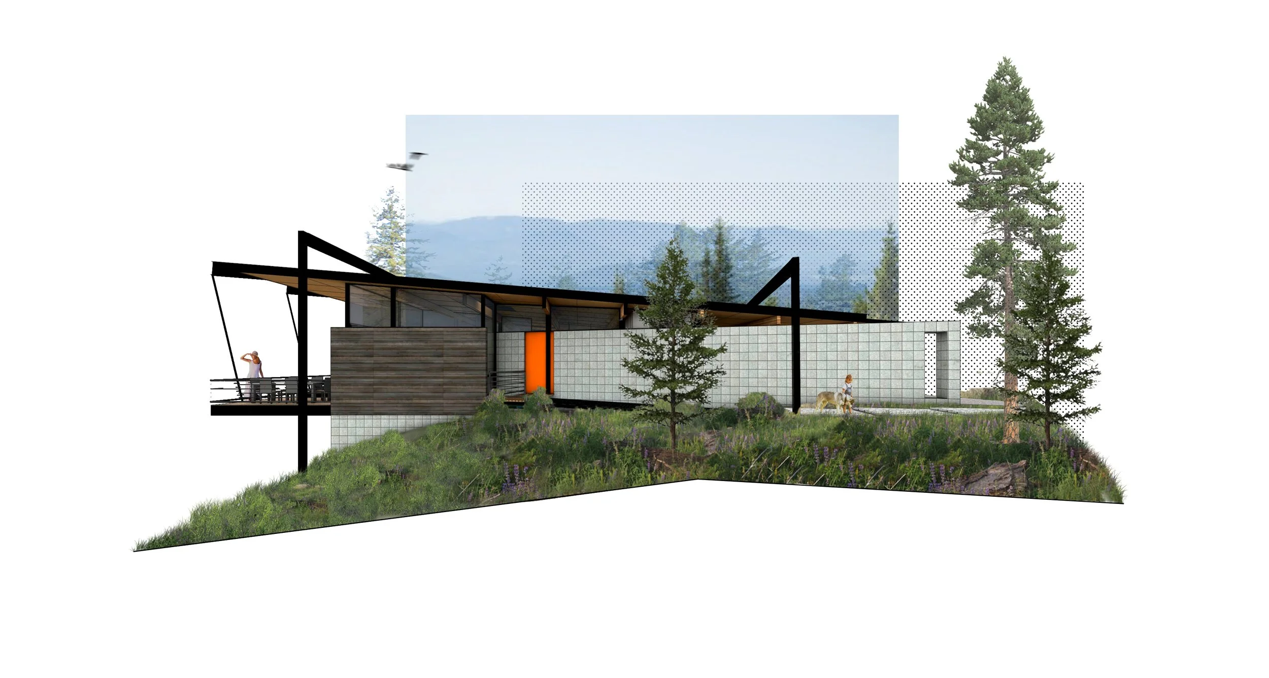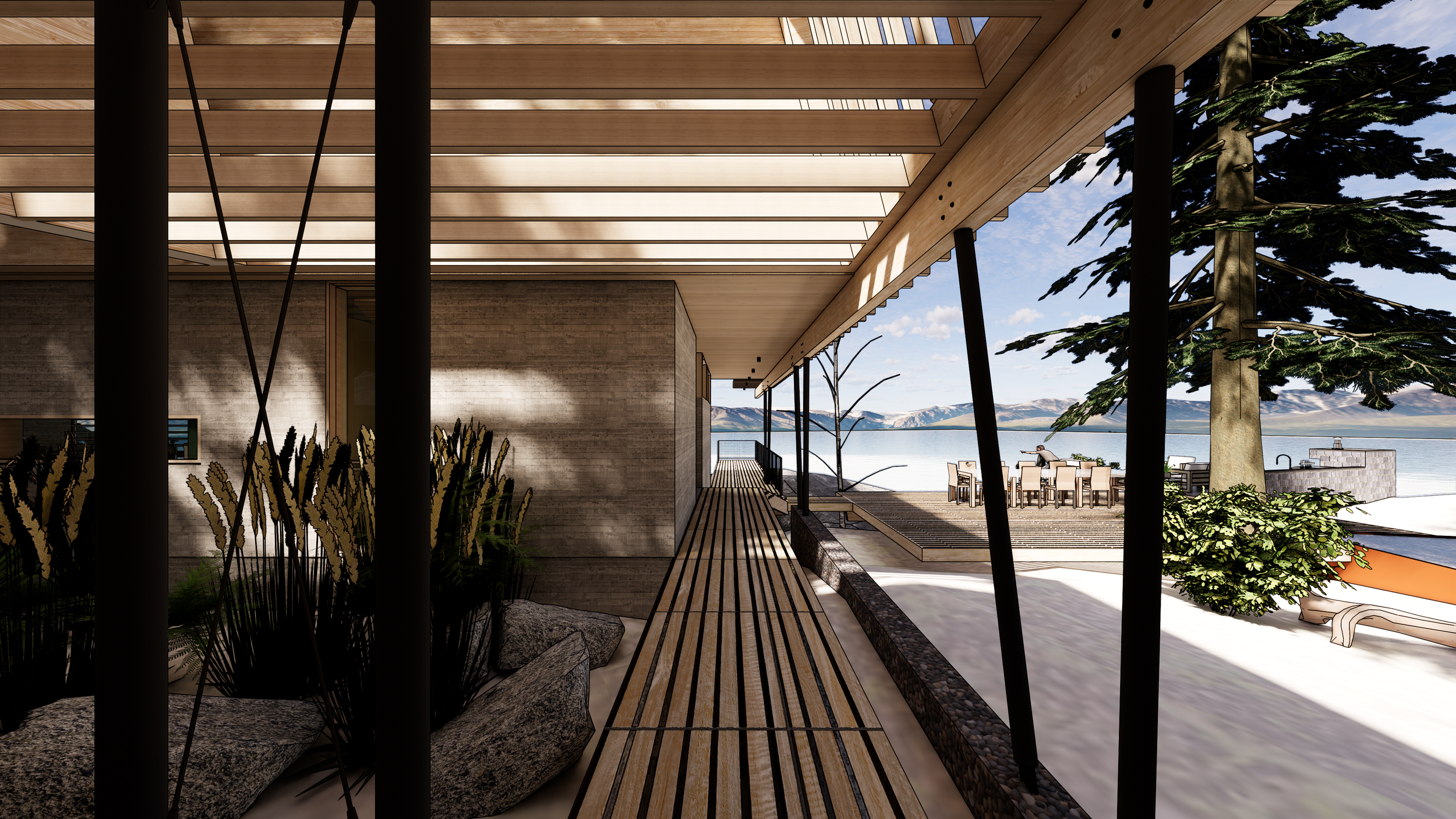 Three structures are carefully positioned along the shores of Spirit Lake, ID to create a unified cabin complex. A main cabin serving anchors the prominent point, while a double-suite guest cabin is nestled discretely against the hillside. Further removed, the lively bunkhouse is strategically designed to pack in guests and focus activity around a central conversation pit.